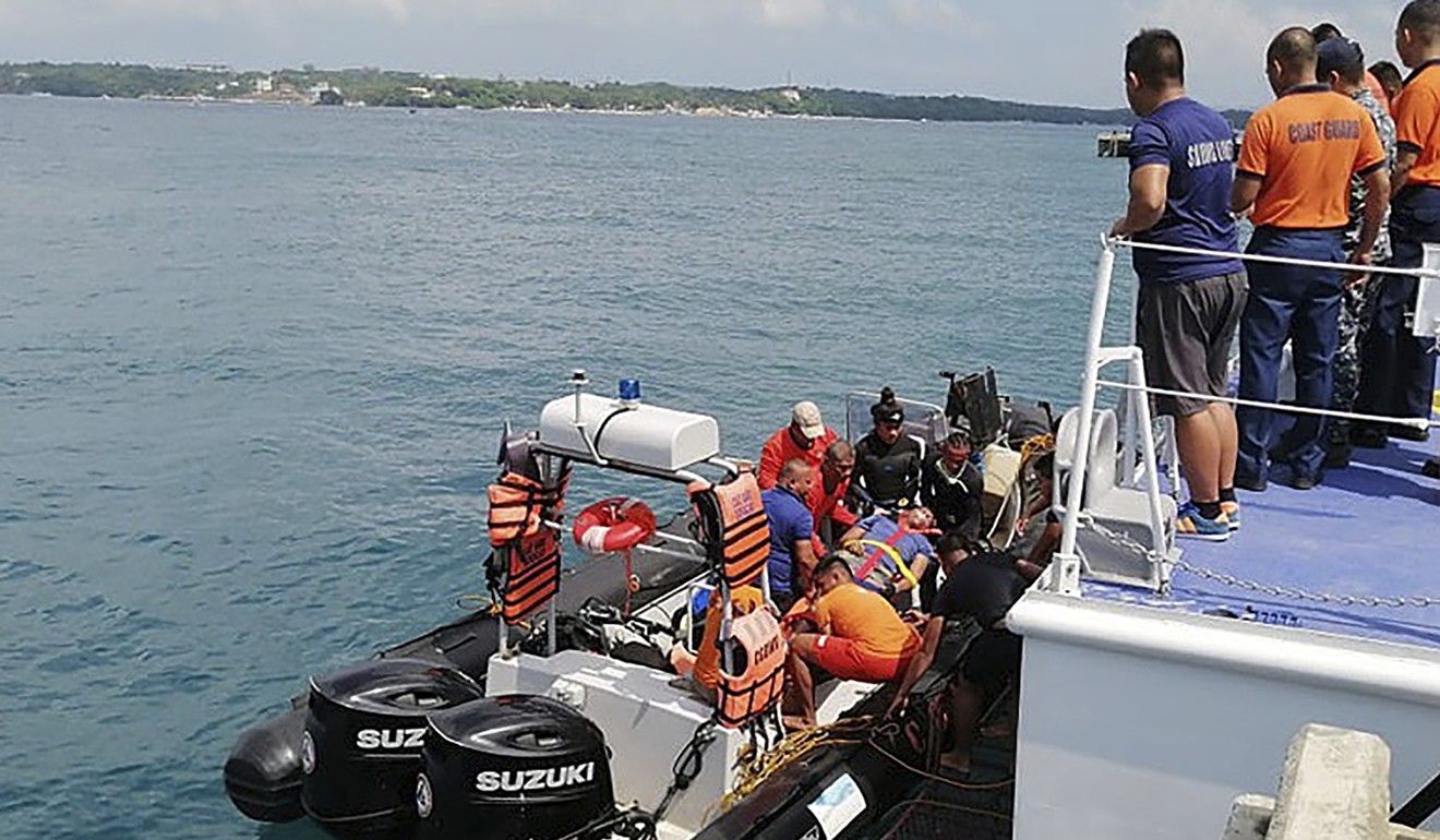 A dragon boat capsized off the coast of Boracay Island. Photo: Philippine Coast Guard via AP