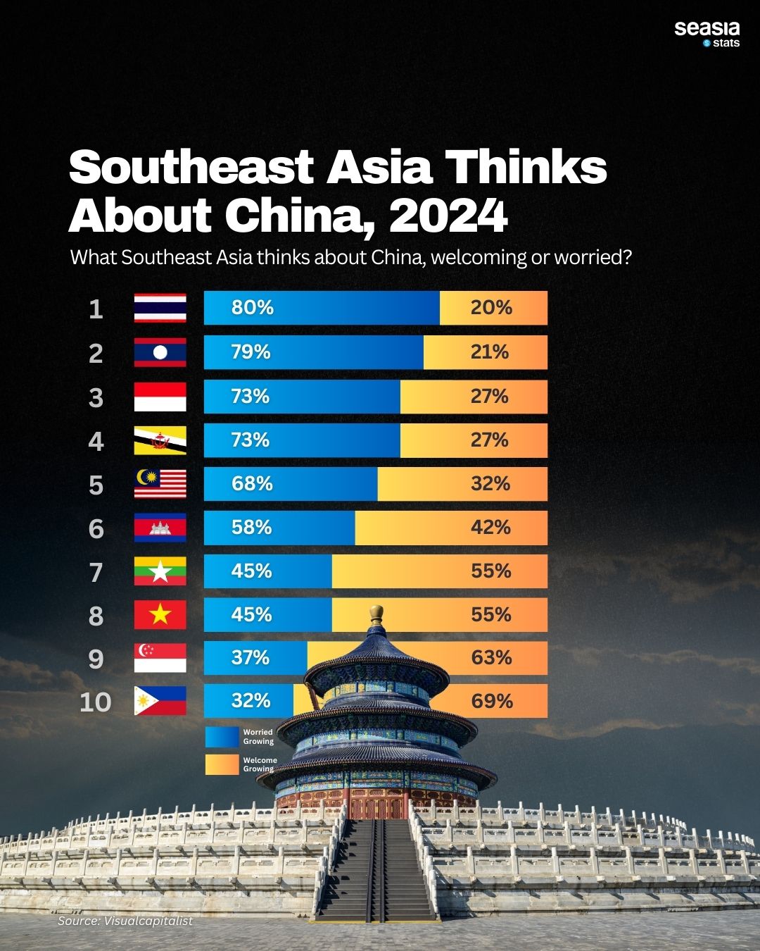 The study covered member states of the Association of Southeast Asian Nations (ASEAN), which consists of 10 Southeast Asian countries. Attitudes towards China A major proportion of participants from all 10 countries expressed concern in regards to the growing influence of each the United States and China.