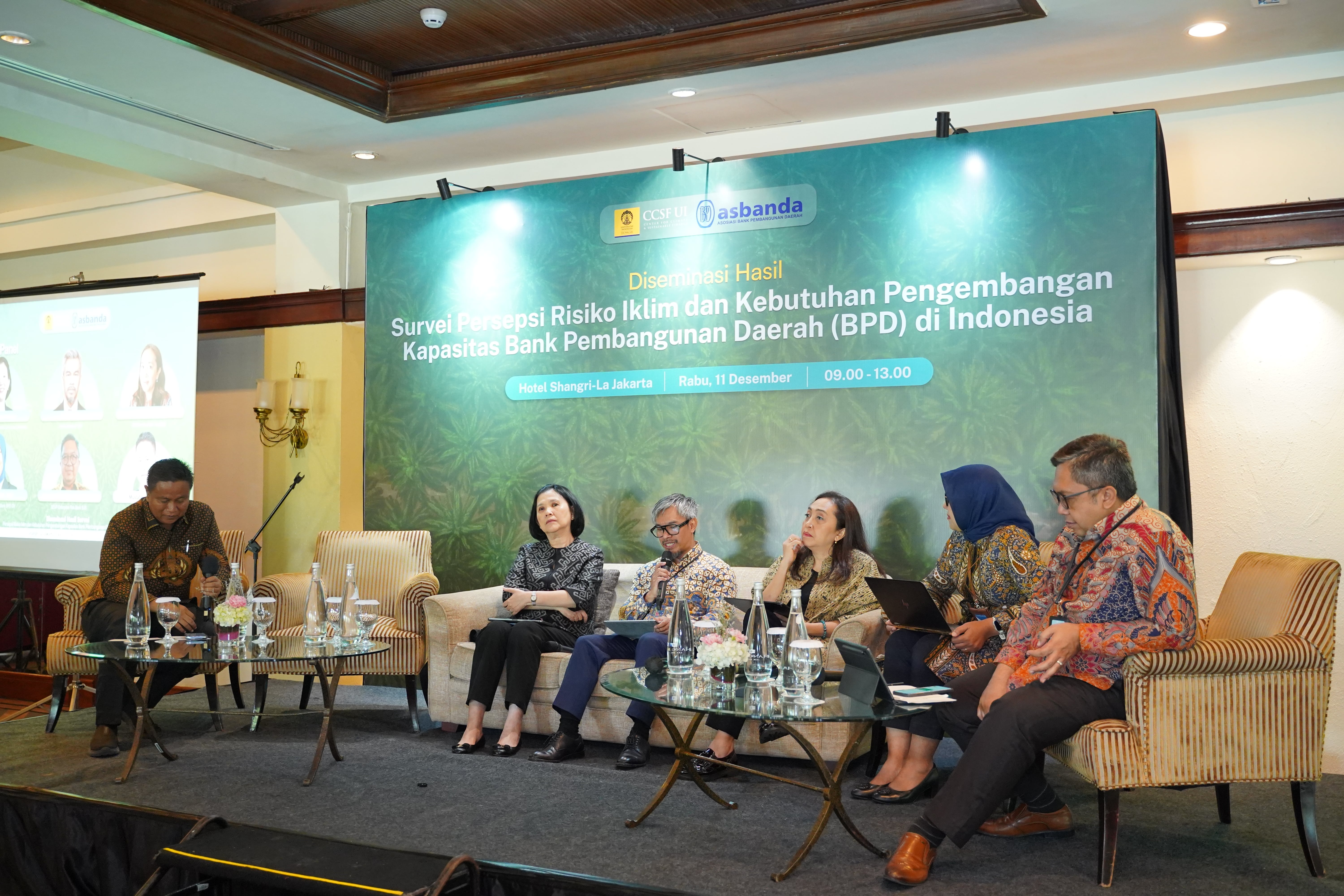 A study by the Center for Climate and Sustainable Finance on the University of Indonesia (CCSF UI) found a high level of awareness of climate change issues amongst employees of local development banks (SNDBs). Of the 4,345 respondents from 23 SNDBs, 95.45% recognized the existence of climate change and 59.2% recognized its significant impact on the profitability of their institutions.